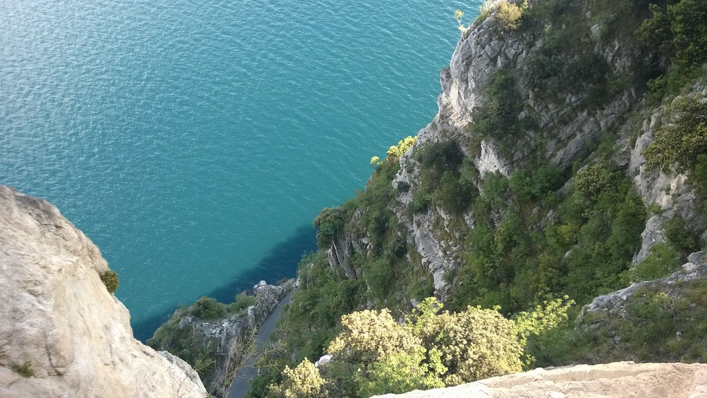 Ein Highlight neben dem Tennisplatz war ganz klar unsere Trekking-Tour mit dem liebenswerten Vincenzo von TREMOSINE TREKKING EXPERIENCE . Mit ihm ging es nachmittags von Pieve aus über einen kleinen Trampelpfad hinab an den Gardasee und dort entlang der alten Fahrstraße, ausgerüstet mit Leuchtwesten die Brasa-Schlucht hinauf. Die atemberaubenden Ausblicke von der Straße ins Nichts bzw. hinab direkt auf den Gardasee verschlugen einigen von uns den Atem.